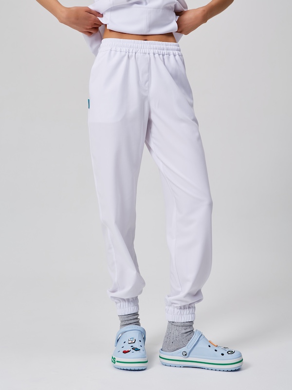 Брюки-джоггеры на эластичном поясе со шнурком обеспечивают идеальную посадку, а два прорезных кармана делают их еще более практичными. Уникальный насыщенный цветподчеркивает индивидуальность и выглядит стильно в любом медицинском учреждении.